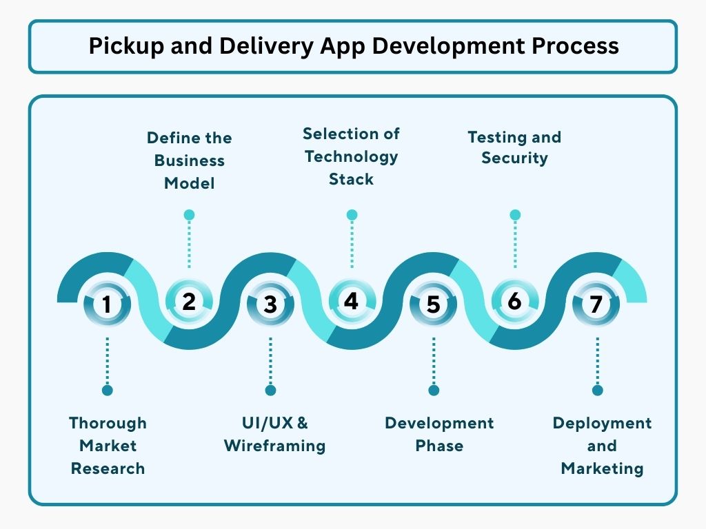 Building a reliable app requires planning and execution. Here’s the development process that helps bring a high-performing pickup and delivery app to life: